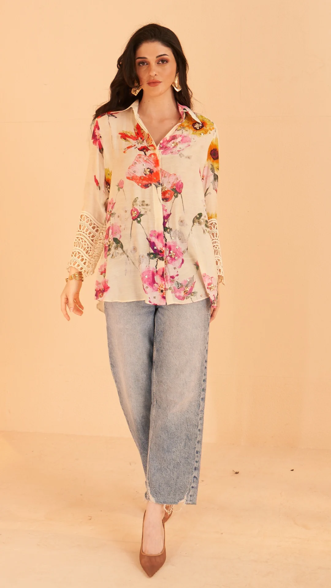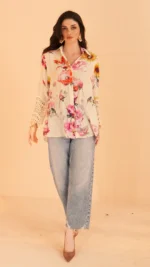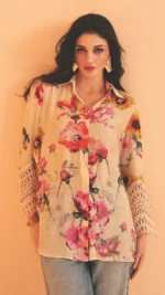 Floral Chanderi Shirt with Fancy Sleev