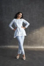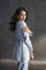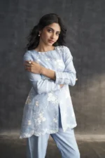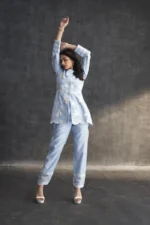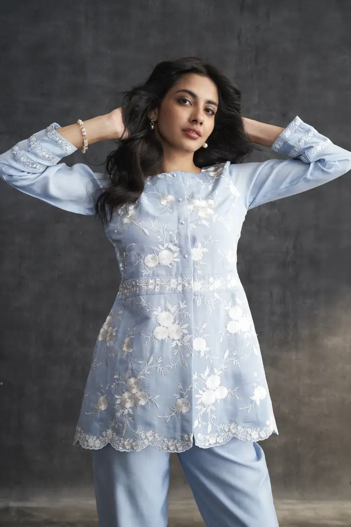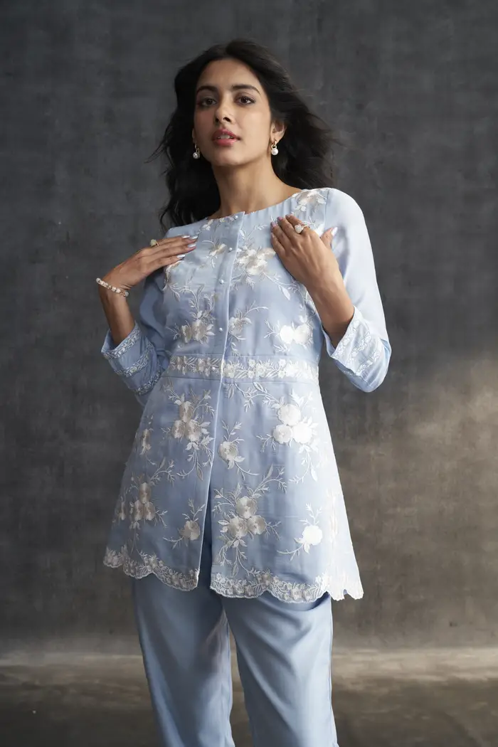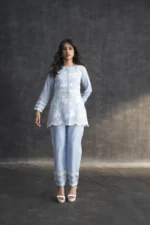 • Mint Blue Muslin Parsi Gara Work Co-ord Set