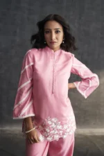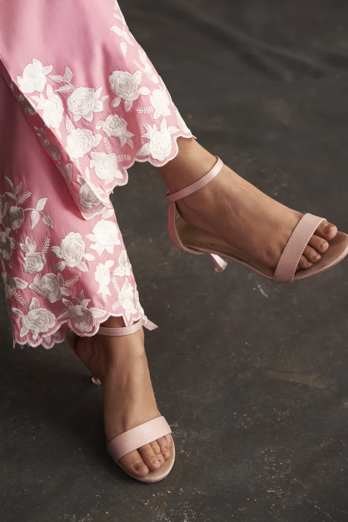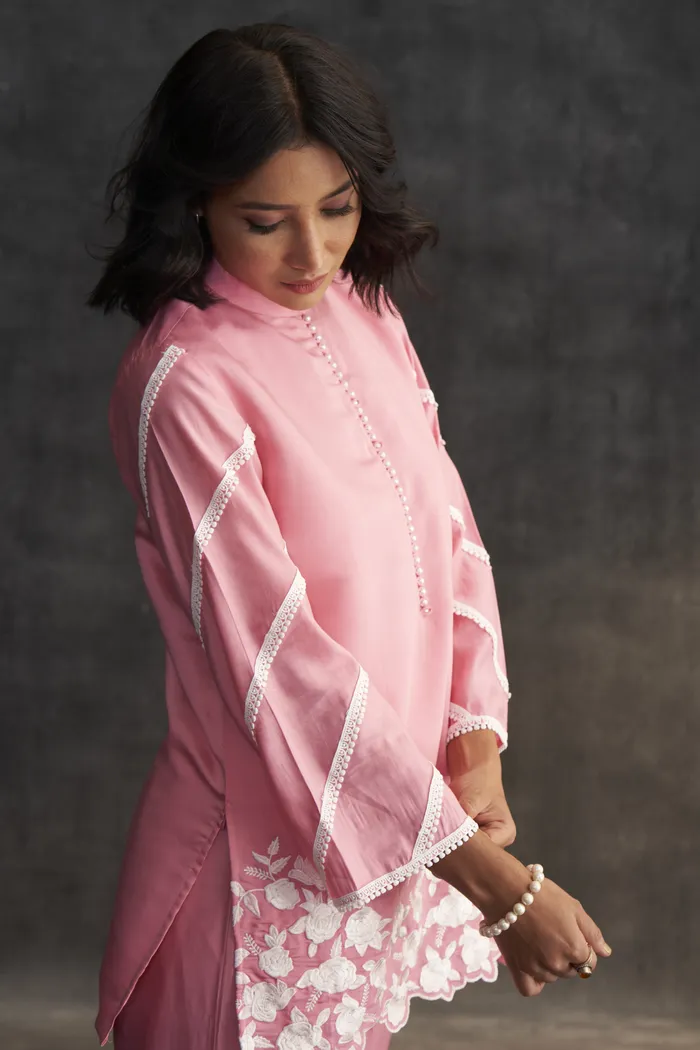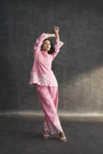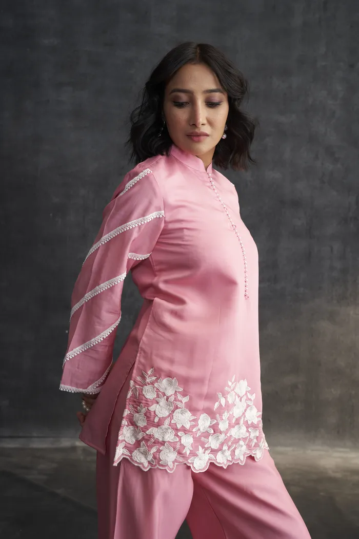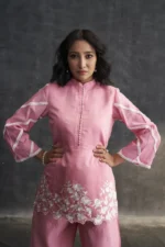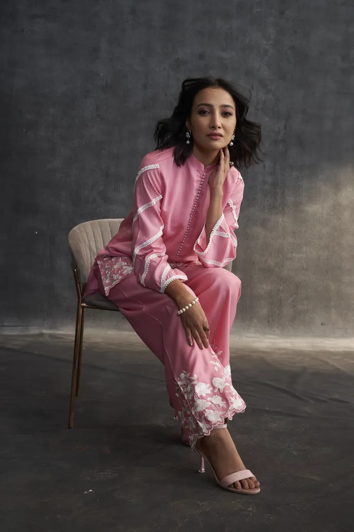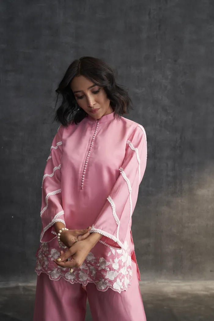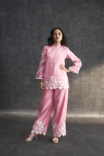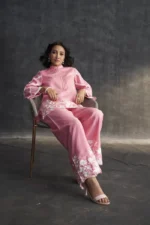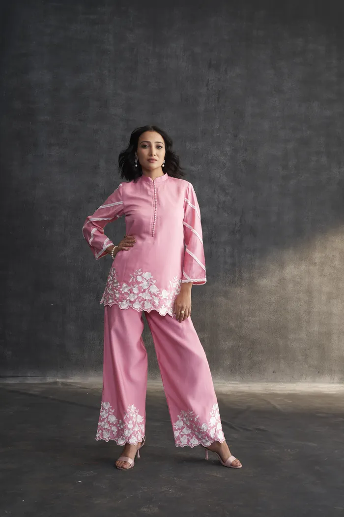 • Pink Muslin Parsi Gara Work Co-ord Set